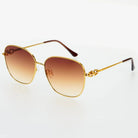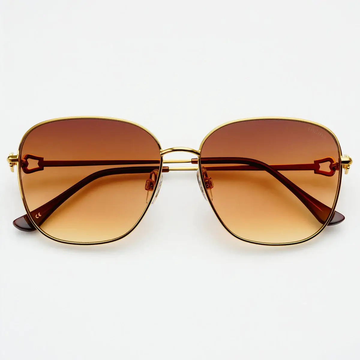 Lea Gold Brown Sunglasses feature a stylish design characterized by a rich golden brown frame, offering a blend of elegance and sophistication. The rounded or oversized lenses are typically tinted in complementary shades, providing both UV protection and a chic statement. These sunglasses often appeal to fashion-forward individuals looking for versatile eyewear that can enhance various outfits while ensuring comfort and durability. The overall aesthetic is modern yet timeless, making them a popular choice for casual outings or formal events.