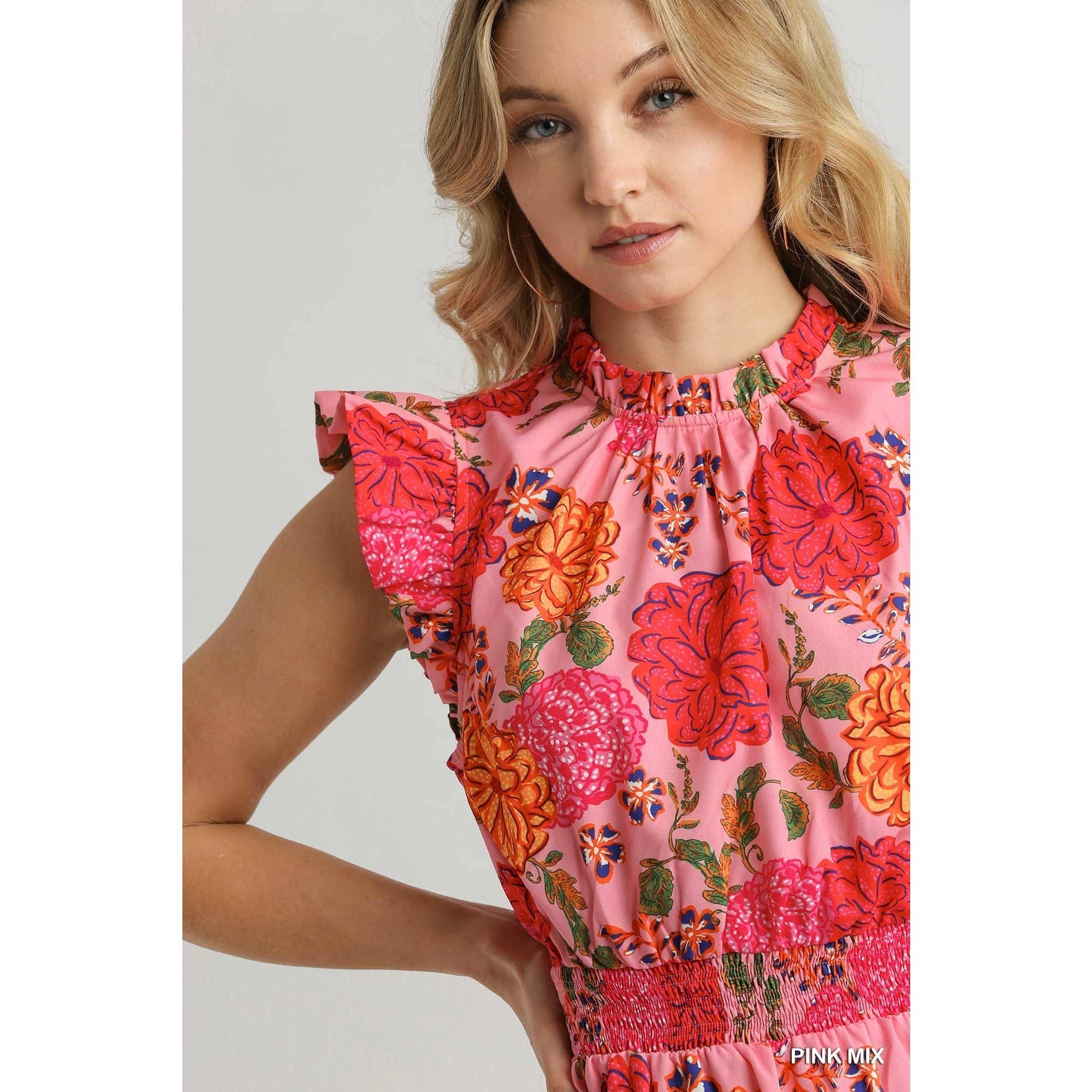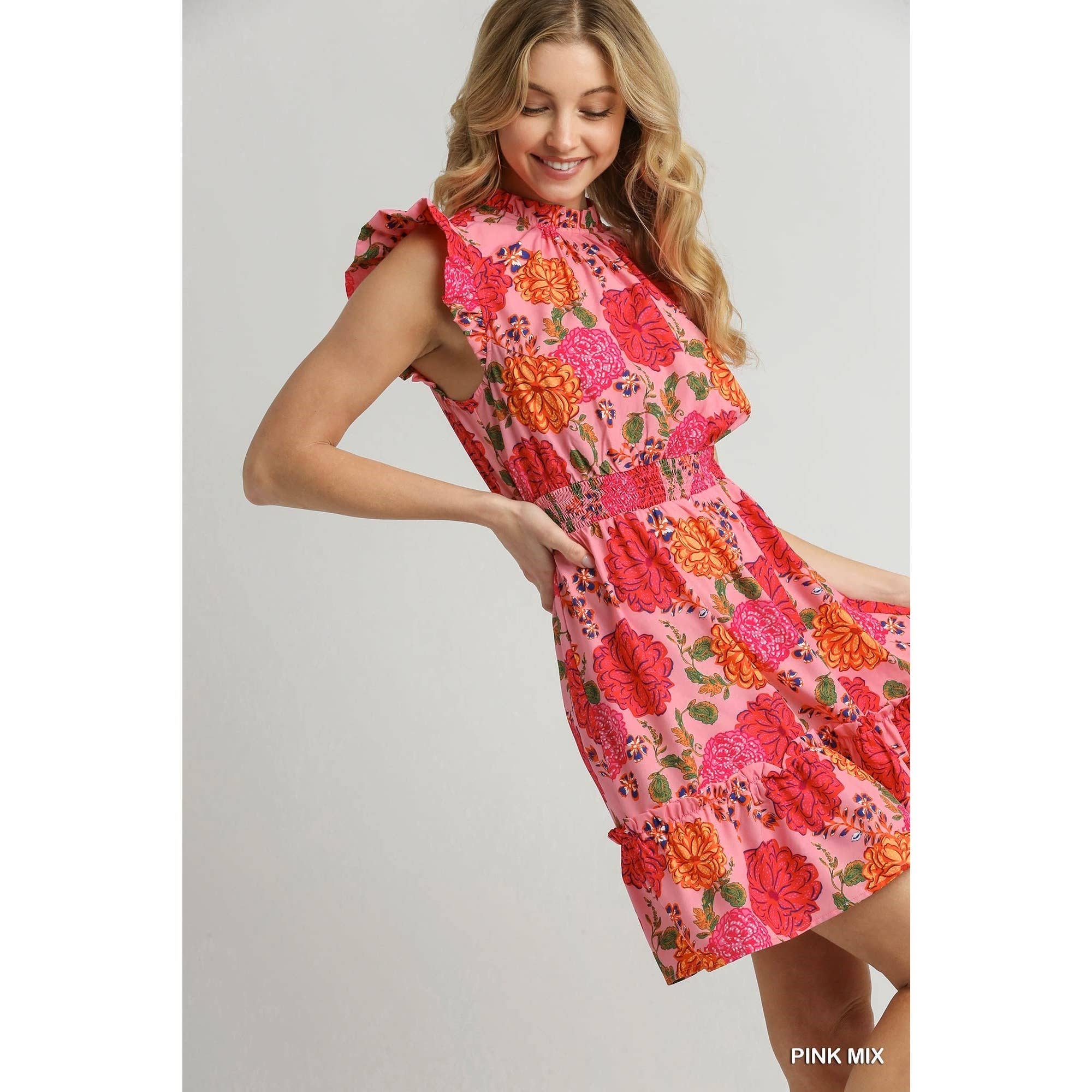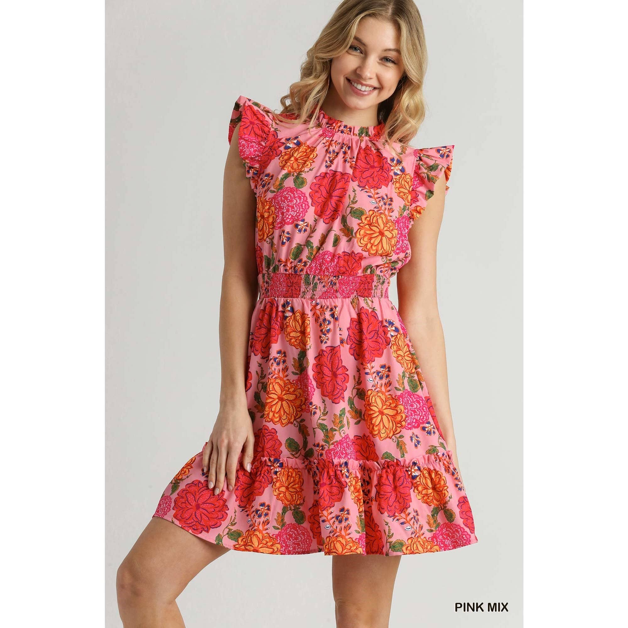 - Floral Print Tiered Dress with Ruffle Sleeves & Smocked Waistband