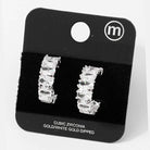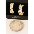 Oval CZ studded hoop earrings are elegant accessories characterized by their oval shape and sparkling cubic zirconia (CZ) embellishments. These earrings typically feature a lightweight hoop design that gracefully frames the face, while the CZ stones are set along the outer edge or in a decorative pattern, adding a touch of glamour and brilliance. Perfect for both casual and formal occasions, they offer a versatile and chic addition to any jewelry collection.
