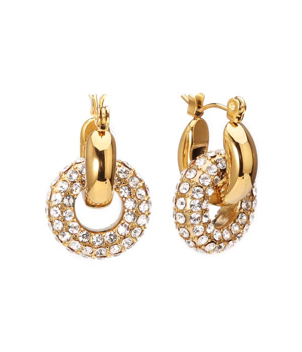Rhinestone Polished Mirror Intertwined Ring Steel Earrings