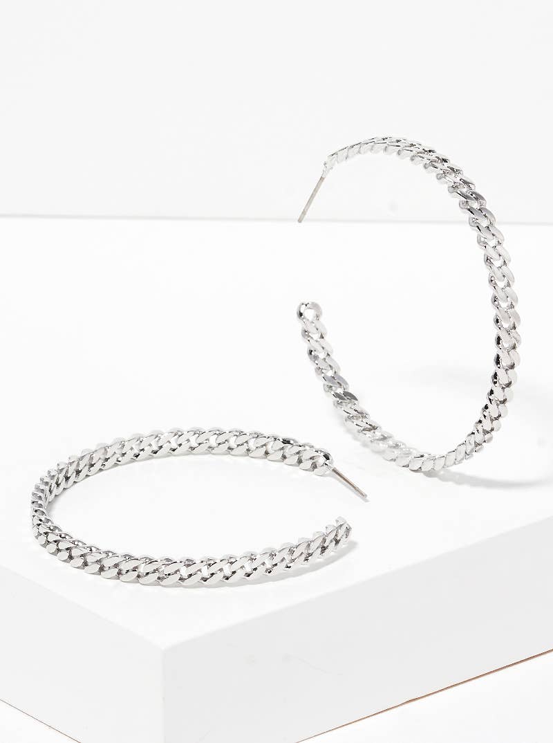 Wild Honey presents our 50mm Metal Chain Open Round Hoop Earrings, a must-have accessory for your wardrobe. These earrings are a timeless piece, beautifully designed to add a touch of elegance to any outfit. They seamlessly blend modern aesthetics with classic sophistication, encapsulating our commitment to fashion-forward design. Whether you're dressing up for a special occasion or adding a finishing touch to your everyday ensemble, these hoops are the perfect choice. Enjoy the blend of style and quality that Wild Honey offers.