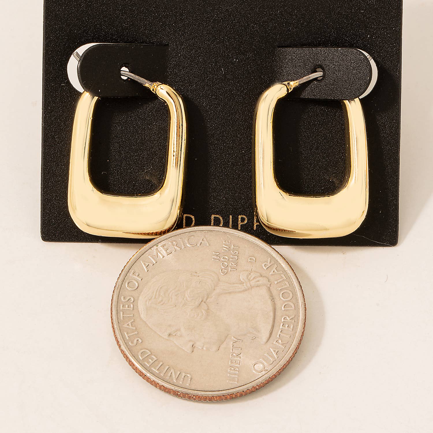 Introducing the Gold Dipped Squared Hoop Earrings from Fame Accessories. These earrings are a fresh addition to our collection, featuring a unique squared hoop design that is both modern and timeless. Each piece is carefully crafted with a golden dip for an extra touch of elegance. With a minimum order of two, you can share the beauty of these earrings with a loved one or keep them all to yourself. Elevate your style with these stunning dangle earrings.