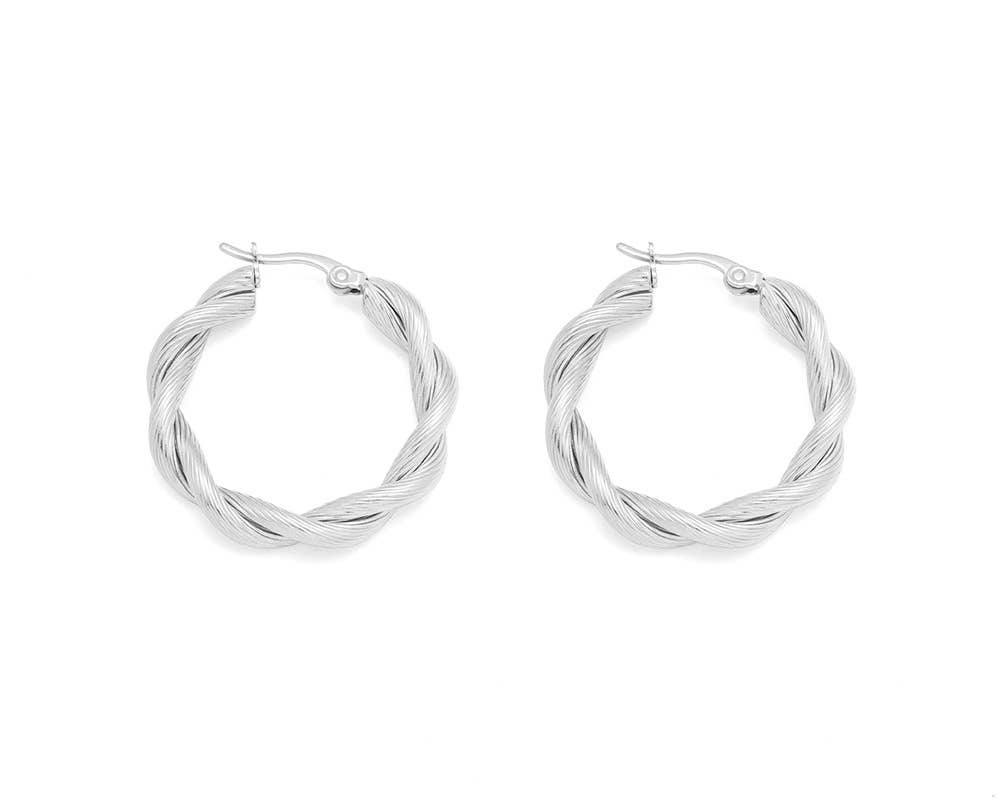 Earrings in the form of hoops, intertwined striated twists, sleeper clasp