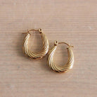 Gold stainless steel oval hoop earrings feature a sleek and modern design with a twisted texture that adds a touch of elegance and sophistication. The polished gold finish enhances their shine, making them suitable for both casual and formal occasions. Their lightweight construction ensures comfort for all-day wear, while the oval shape offers a flattering silhouette that complements various face shapes. These earrings are a stylish accessory that combines durability with contemporary fashion.