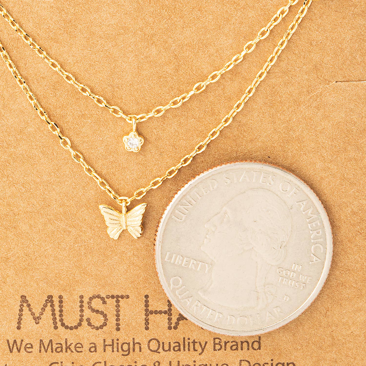 Dainty Layered Chain Link Butterfly Charm Necklace