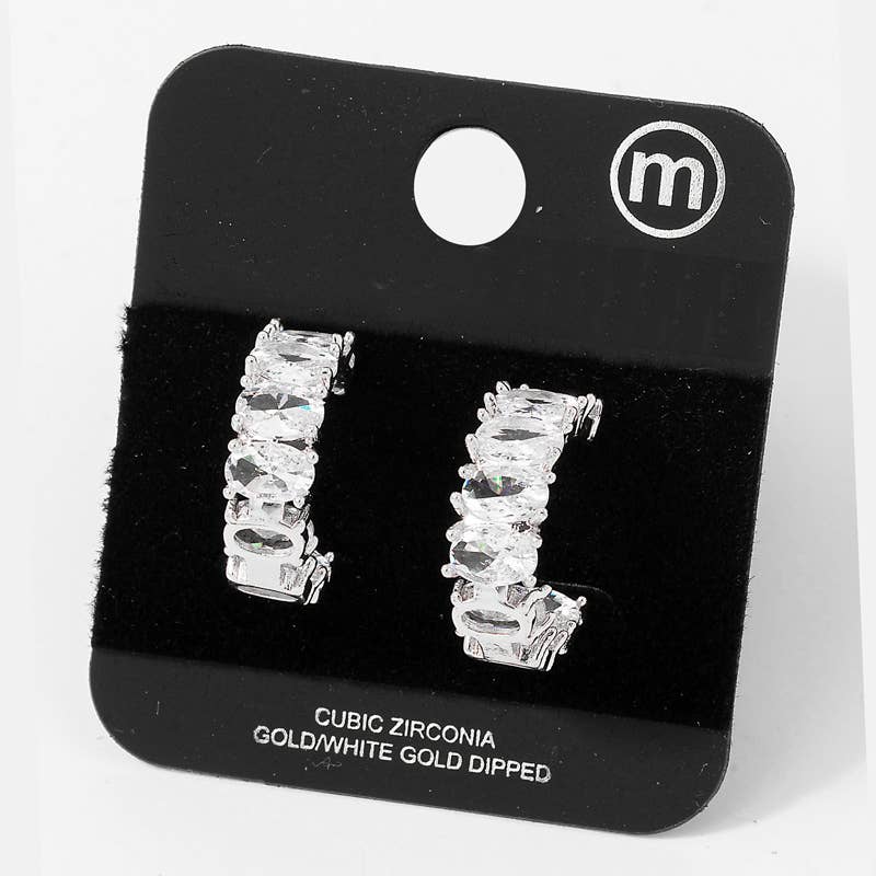 Oval Cz Studded Hoop Earrings