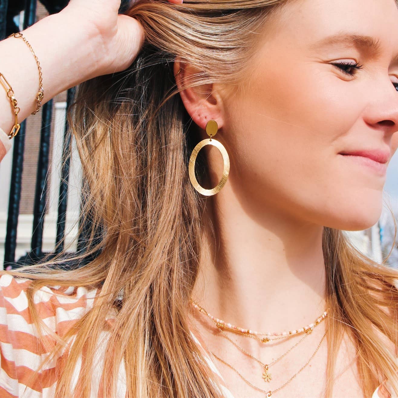 Stainless steel oval hoop earrings twisted – gold