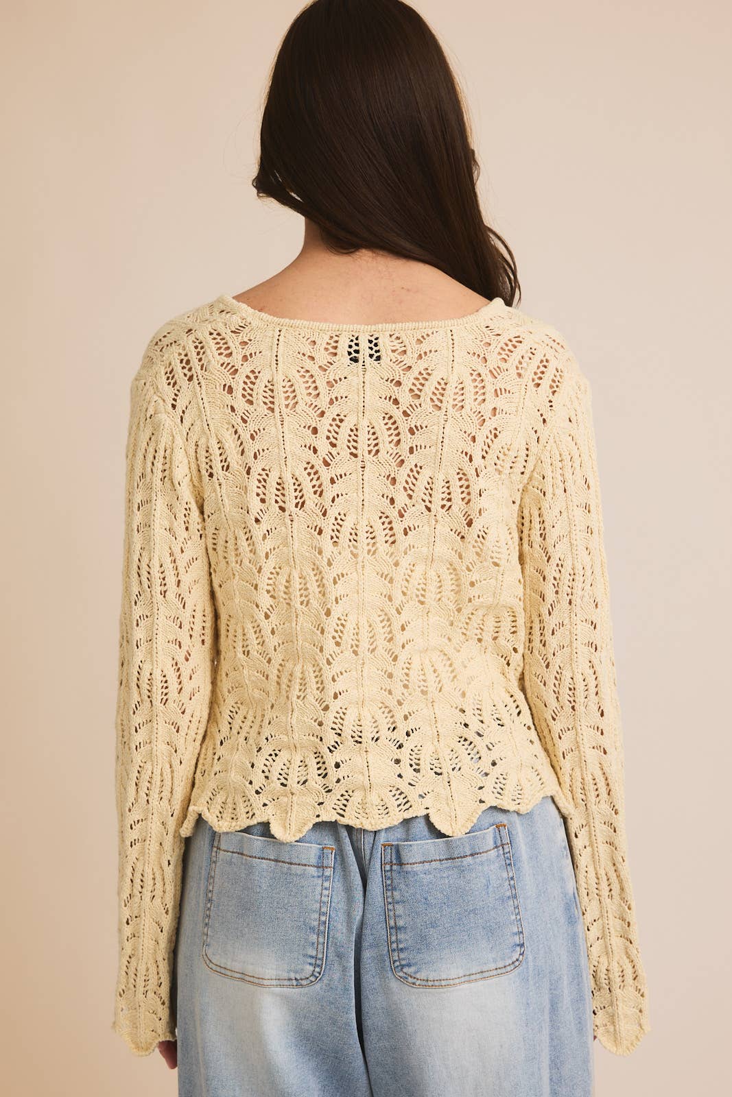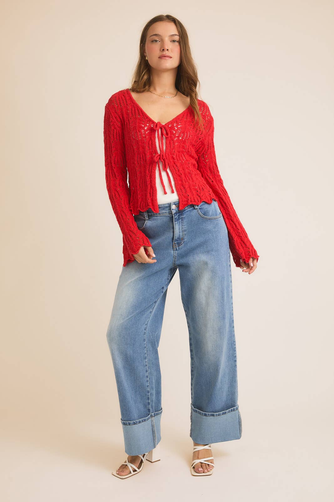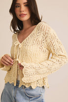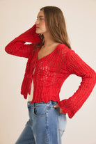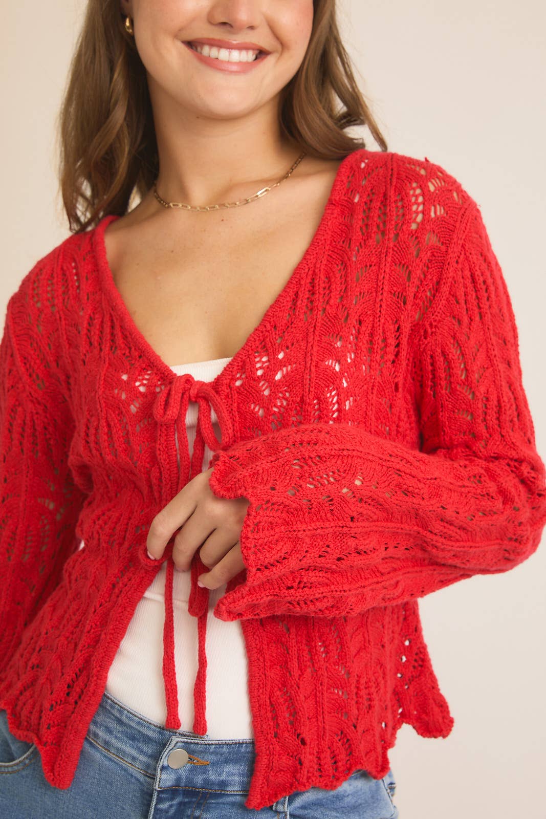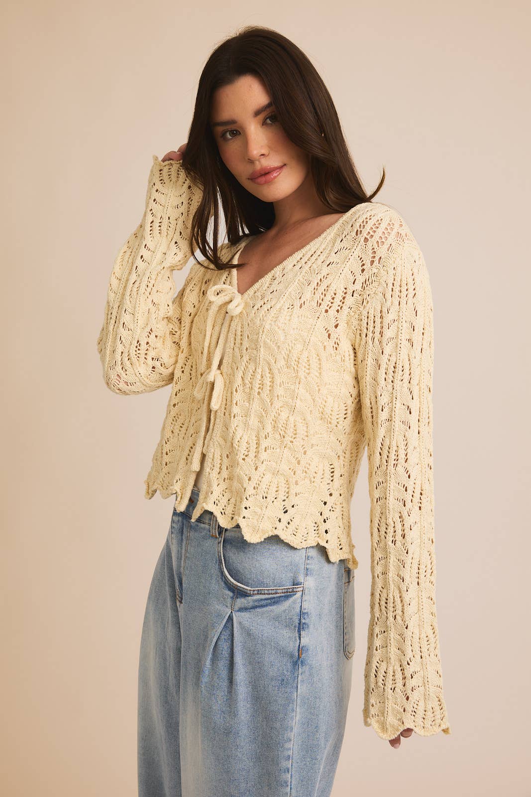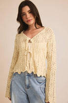 FRONT TIE BELL SLEEVE OPEN KNIT CARDIGAN