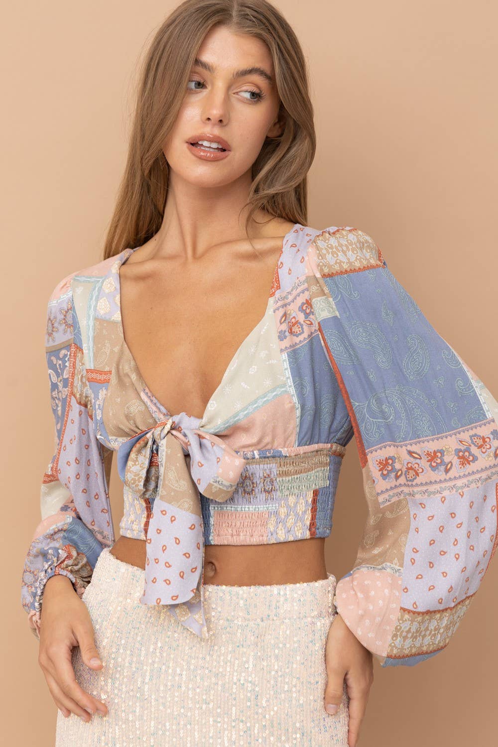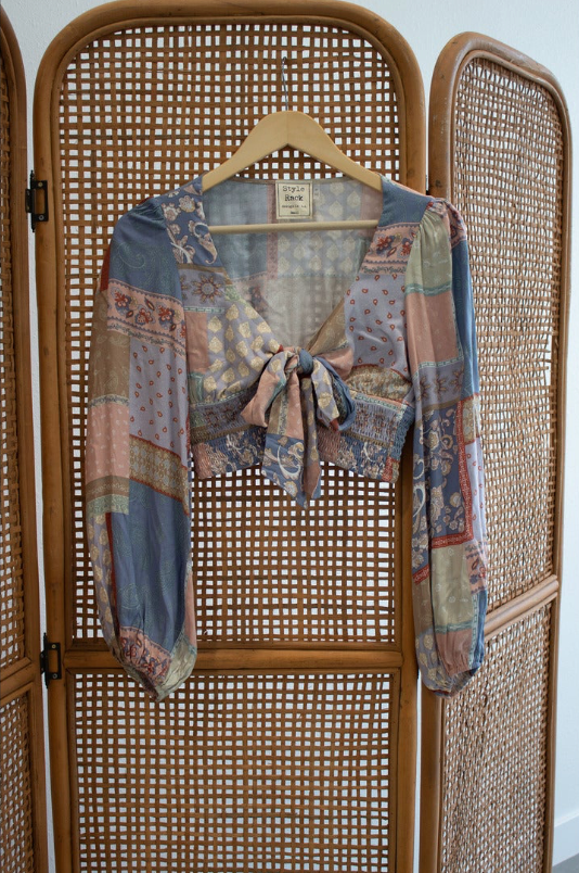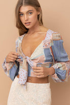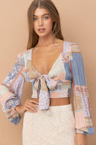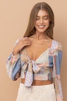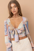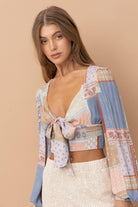 Patch Work Print Front Tie Long Sleeve
