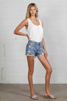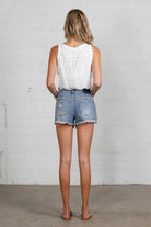 Brand Name: Insane Gene Medium Wash Type: Shorts Closure Type: Zipper Fly Details: Pocket, Frayed Hem, Distressed Waist Line: High Rise Fit Type: Regular Fit Fabric: Non-Stretch Material: Denim Composition: 100% Cotton SIZE S, Model is 5'9" WAIST 29" HIP 38" FRONT RISE 10 1/2" LEG OPENING 23" INSEAM 3 1/4" *Model wears size S*