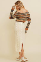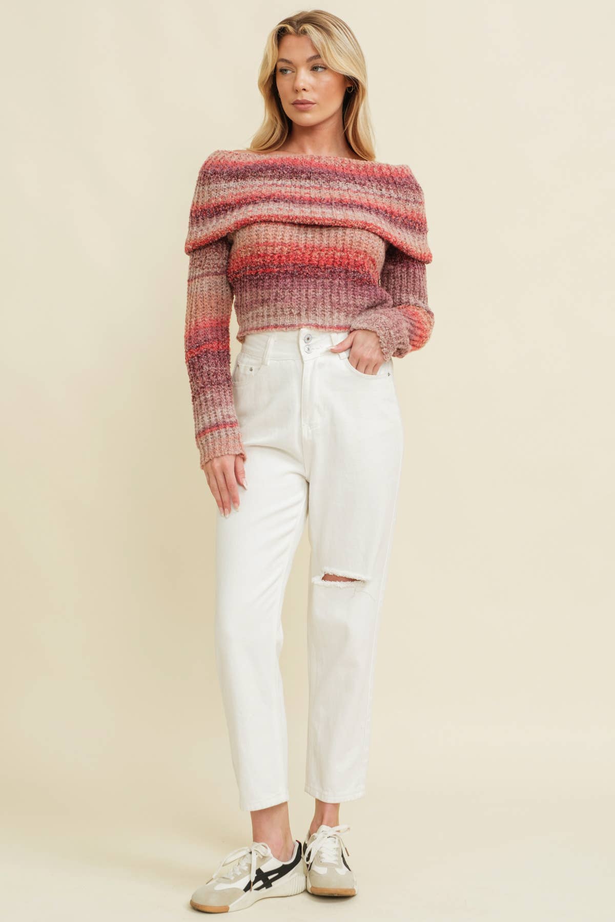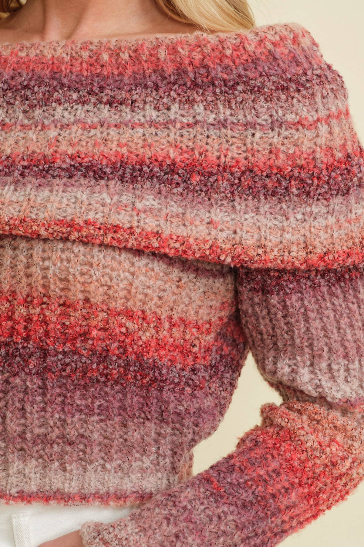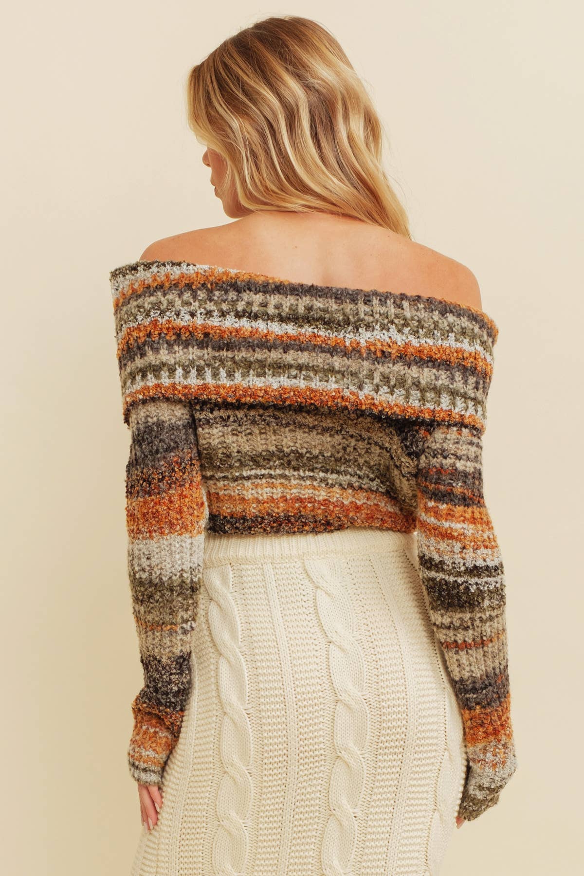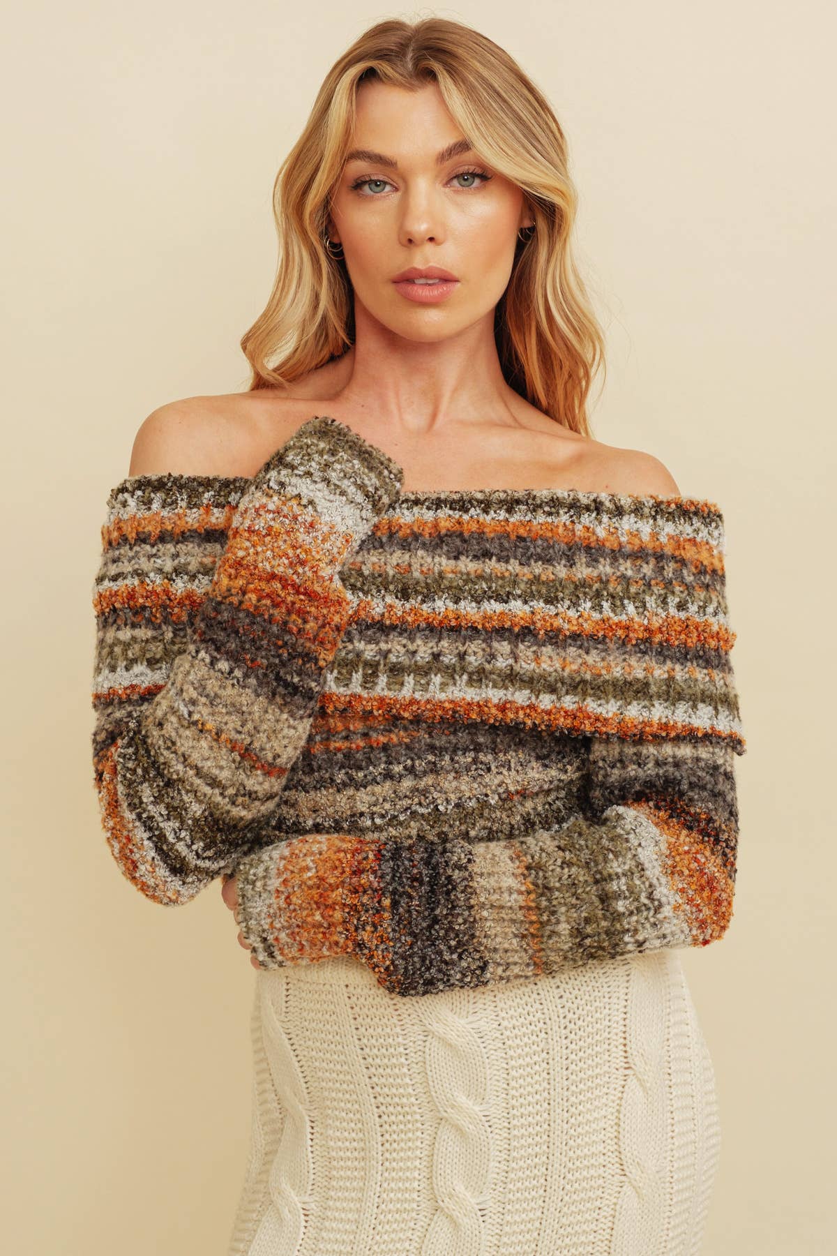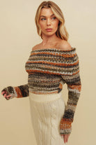 Experience the perfect blend of style and comfort with our Multi Color Off the Shoulder Sweater Top from Cloud Ten. This trendy, chic, and edgy knit sweater is the ultimate addition to any contemporary woman's wardrobe. Its vibrant multicolor design makes it a standout piece that will instantly elevate your style. It's not just about following trends, it's about starting them. Wear it off the shoulder for a flirty, fashionable look. Designed and produced with utmost care in Los Angeles, this is fashion at its finest.