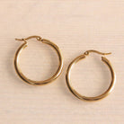 The Stainless Steel Creole 30mm "Basic" in gold features a sleek and minimalist design, perfect for everyday wear or complementing more elaborate outfits. Made from high-quality stainless steel, it offers durability and resistance to tarnishing. The 30mm diameter strikes a balance between subtlety and a statement look, making it versatile for various occasions. Its golden finish adds a touch of elegance and warmth, enhancing its appeal as a classic accessory in any jewelry collection.